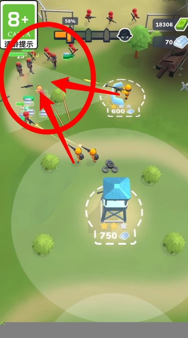 2.点击地面标记选择部署点,安放士兵即可参与战斗,快速占据防御据点。