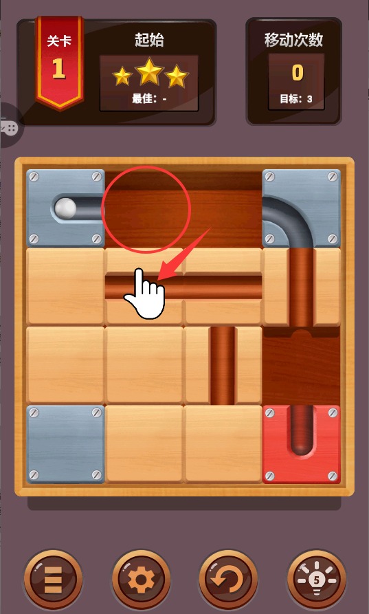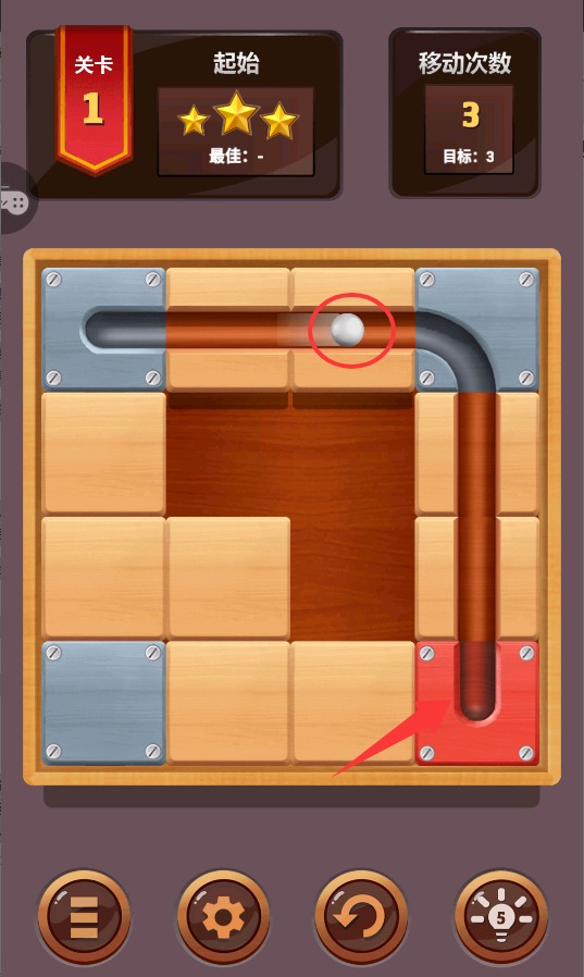 1、观察关卡布局,规划移动路线。先确定小球行进方向,再思考如何移动木块。合理利用每个木块的空间,搭建完整通道。