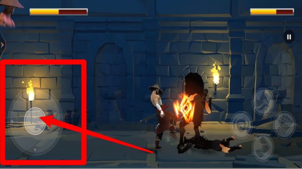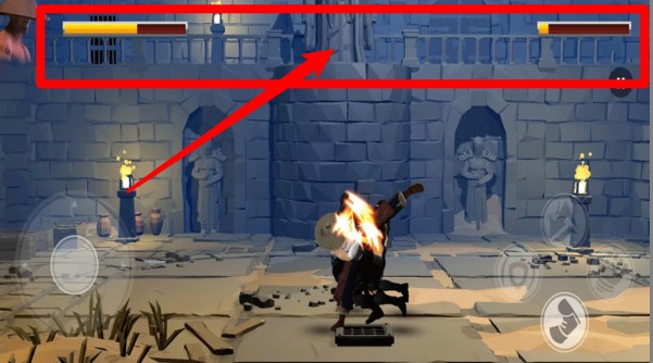 1.左右移动摇杆(左下角):玩家可透过左下角虚拟摇杆控制角色横向移动,用来接近敌人或闪避攻击。