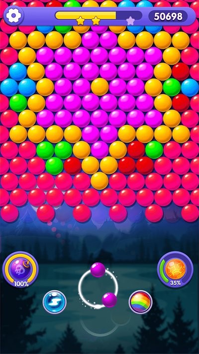 1、经典消除模式:发射彩色泡泡与同色泡泡连接,形成三个以上即可消除,清空整个泡泡障壁即可过关。