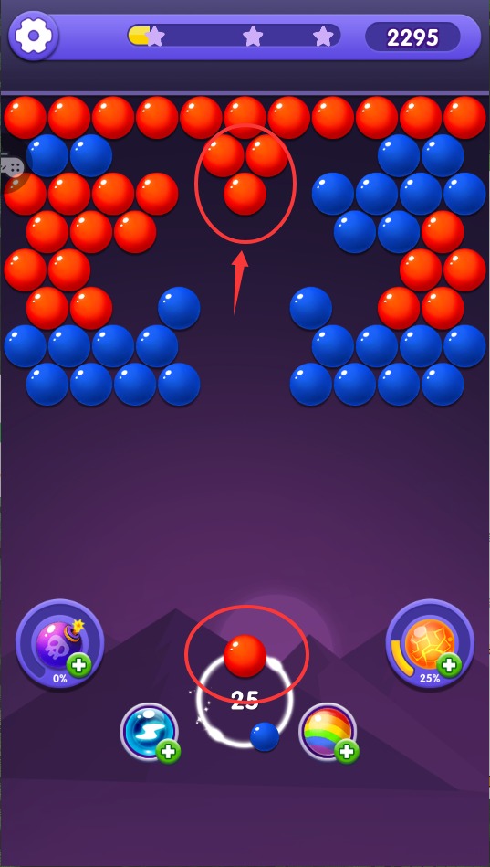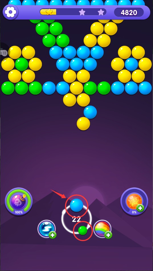 2、遇到颜色不对的泡泡别着急,点一下底部的切换键就能换颜色,灵活变换才能打出连击效果。