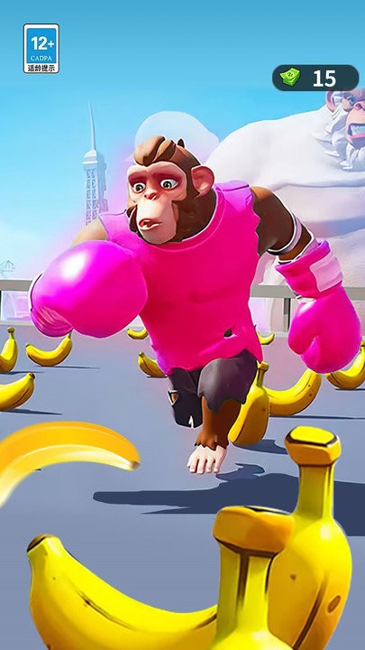 1、创新跑酷进化玩法,将传统跑酷与角色成长系统完美结合。玩家通过收集香蕉和金币来促进猿猴进化,解锁更强力的形态和能力。