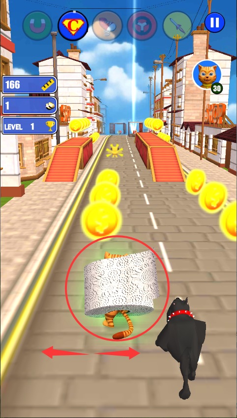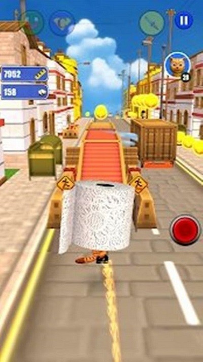 手纸猫跑酷游戏主角是只卷着卫生纸的猫,路上要躲开各种障碍。操作简单,左右滑动就能控制方向。跑的时候能捡道具,攒够了能换新皮肤。关卡设计得挺有意思,玩着玩着就停不下来。画面卡通风格,看着挺舒服。