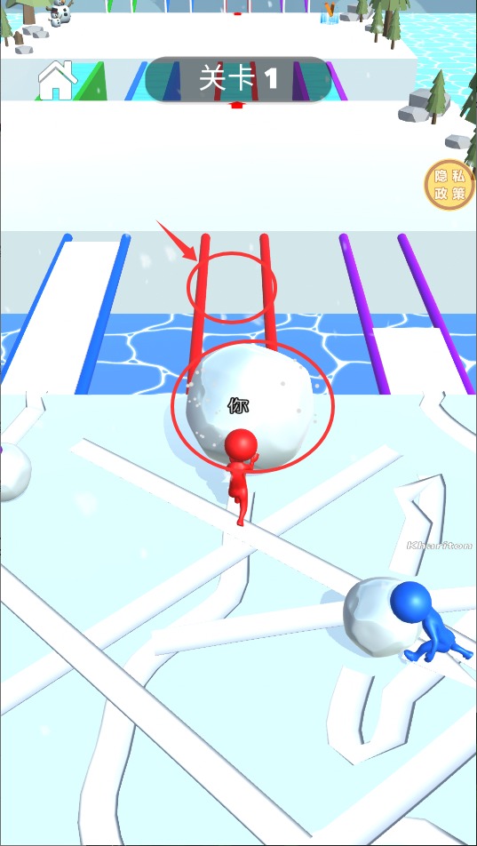 1、经典闯关模式:在规定路线内收集物品增大雪球,避开障碍抵达终点。