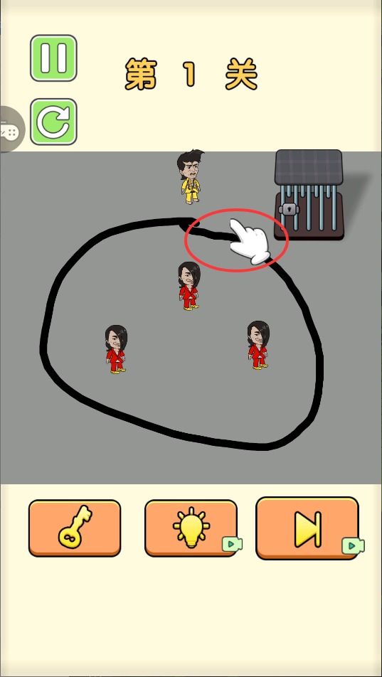 2、用手指滑动屏幕绘制保护线,将角色与危险区域隔开,注意线条要闭合完整才能形成有效防护。