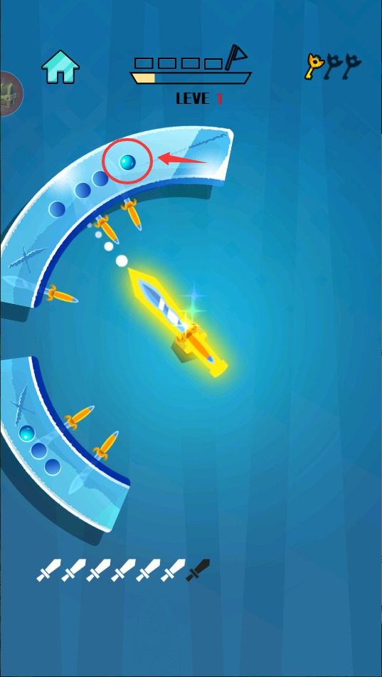 3、观察目标能量条变化,成功命中会累积伤害值,清空能量条即可通关并获得新刀具皮肤奖励。