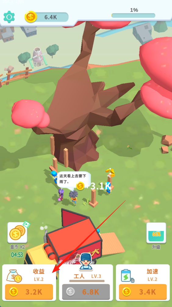 3、随着游戏推进,关注收益、工人等级和加速功能,适时升级“收益”等项目,提升金币获取量。