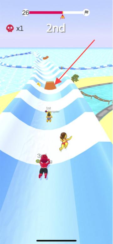 1、基础滑行与策略对抗:滑动屏幕控制小人左右移动,靠近对手时可撞击使其失衡掉落,遇到障碍物提前变向躲避,合理利用赛道。
