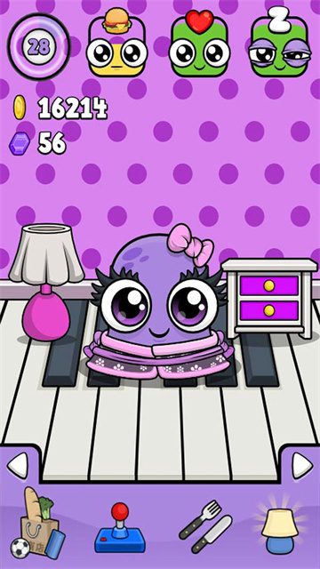 3、拥有多样休闲体验,如种植专属花园、收集贴纸卡牌、水族馆养鱼等,让养宠过程充满生活气息与趣味性。