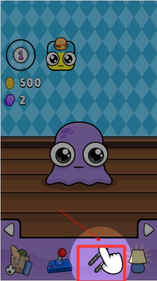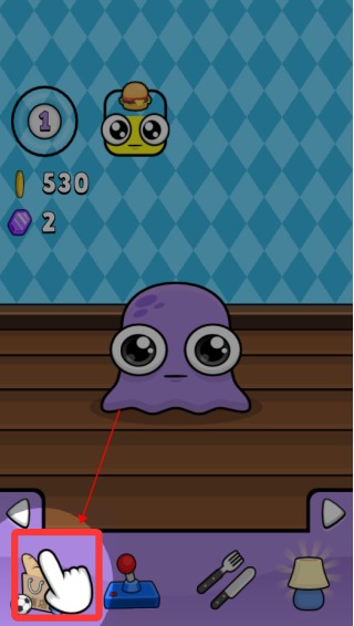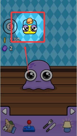 1、进入游戏,上方会呈现宠物的当前状态,如现在我们的小宠物饿了。