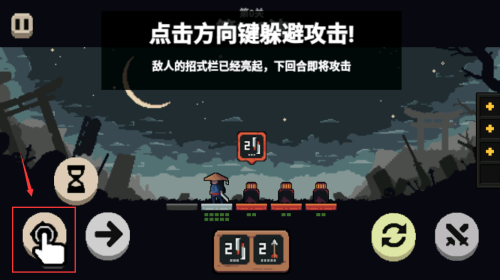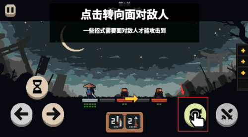 2、根据游戏提示点击右边键位,转向面对敌人。