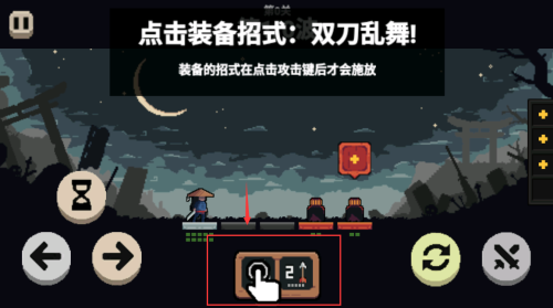 3、根据游戏提示点击中间装备招式,双刀乱舞。