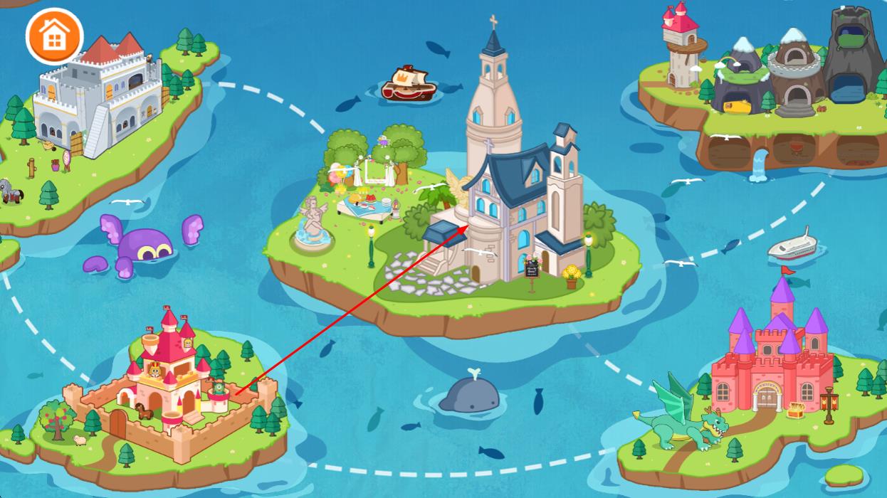 1、沉浸式童话场景:还原城堡七大主题区域,搭配柔和配色与动态动画,如花园蝴蝶飞舞、厨房炉火跳动,营造身临其境的梦幻氛围。