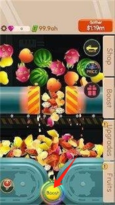 2、点击水果下滑,注意收集订单中的特殊材料,可能用于解锁限定果汁,利用每日登录奖励获取免费水果与加速升级。