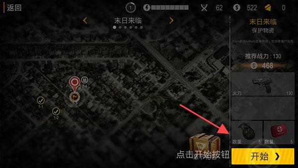 1、首先我们需要选择想挑战的关卡,再点击右下角的开始按钮进入游戏。