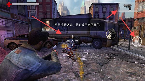 1、探索与战斗操作:虚拟摇杆移动射击,滑动切换武器,长按释放范围技能(火焰炸弹/急救包),走位躲避丧尸围攻。