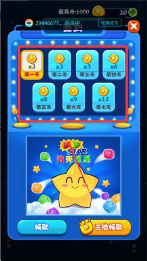 4、玩家在游戏里每关要达到目标分数通关。多消除星星得分高,剩星星少奖励多,多个一起消分数还会叠加,没有时间限制,让玩家充分思考策略。