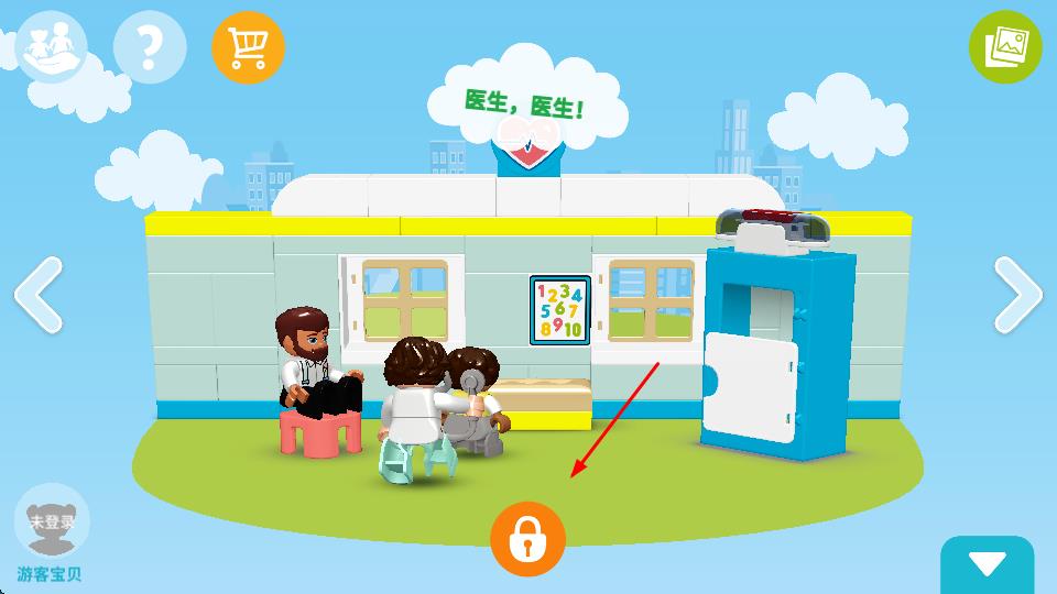 1、初入乐高得宝世界,孩子们会看到充满童趣的主界面,点击左下角浏览游玩项目,左右滑动便能挑选心仪的主题场景,如热闹的游乐园或宁静的农场场景等。