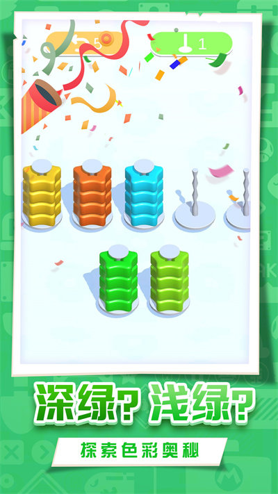 1、创新排序玩法带来全新体验,玩家需精准投掷彩色圆环,使每个立柱仅保留同色圆环,独特的物理碰撞机制让每次操作充满变数。