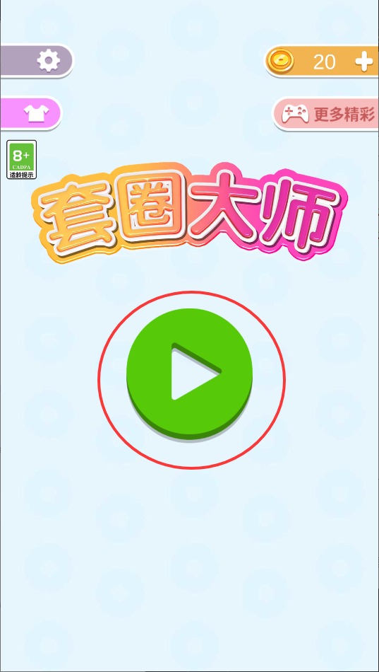 1、进入游戏后轻触开始按钮,观察屏幕中央随机生成的彩色圆环,等待最佳时机进行操作。