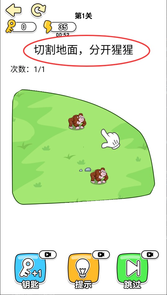 2、猩猩分离的特色玩法呈现。游戏创新性地将动物行为融入解谜过程,玩家需要运用智慧让好斗的猩猩和睦相处。