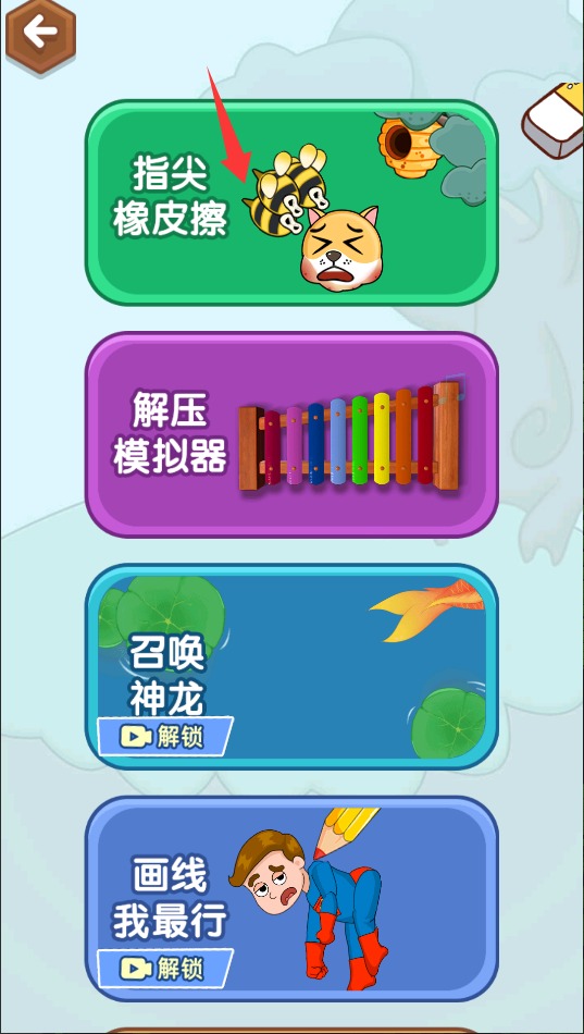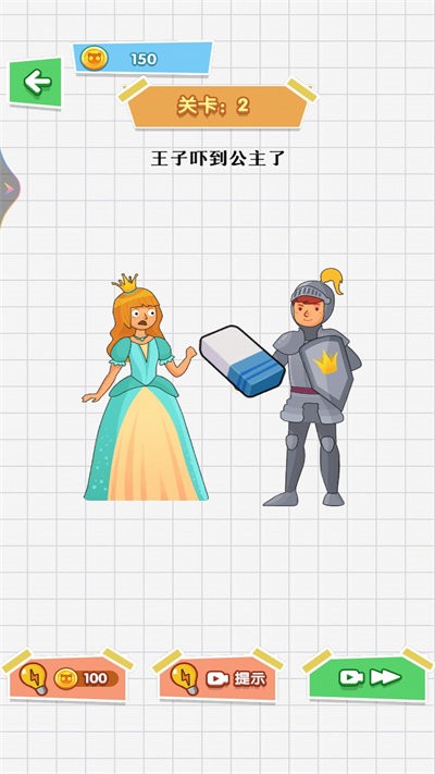 4、个性化装扮系统增添收集乐趣。通过通关解锁各种搞怪皮肤和特效橡皮擦,打造独一无二的游戏形象。