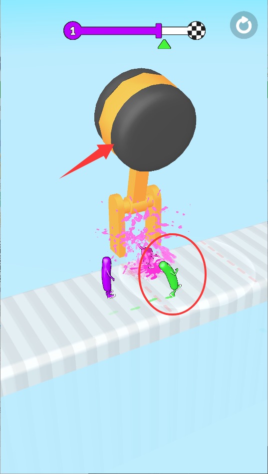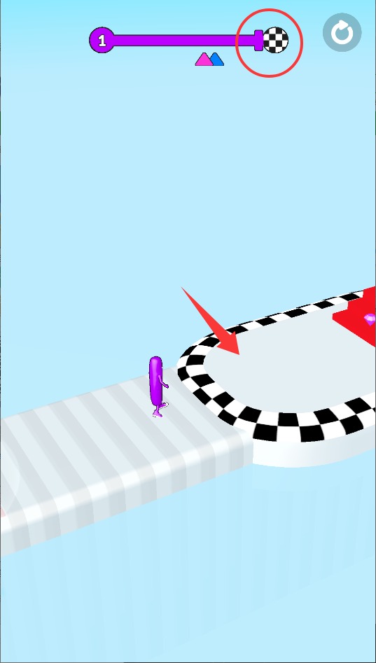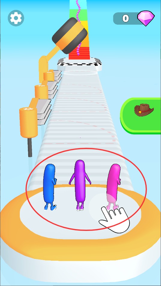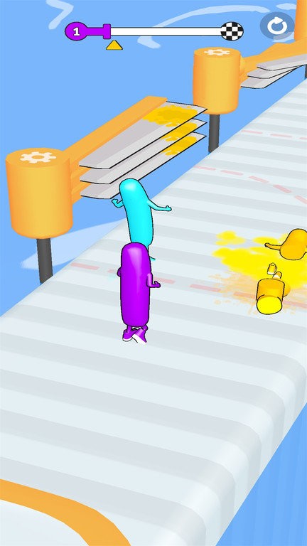 1、游戏开始后通过持续点击屏幕让香肠人保持前进状态,松开手指则会立即停止移动,注意掌握节奏保持匀速。
