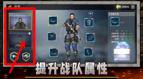 2.左侧可以选择不同队员角色,自由组建最适合当前模式的战斗阵容。