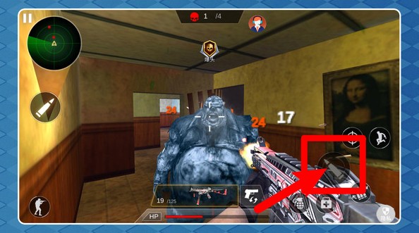 1.点击右侧射击按钮持续开火,火力压制怪物,别让它们靠近自己。