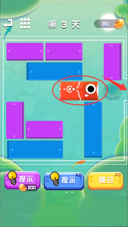 1、在"鱼鱼华容道"中开动脑筋,通过策略移动方块,帮助小鱼逃离困境。关卡难度循序渐进,越往后越考验逻辑思维能力。