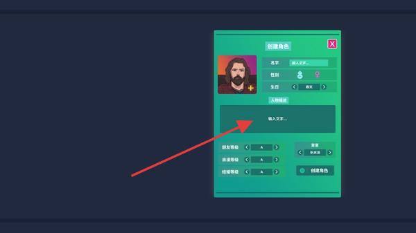 3、在创建角色界面,输入名字,选择性别、生日等属性,设置人物特质,打造个性化角色,开启商业经营之旅。