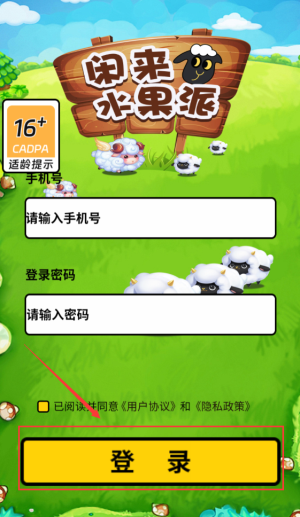 3、注册好后,点击勾选用户协议,然后登录即可游玩。