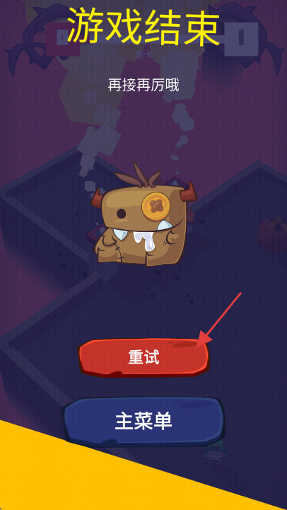 3、若游戏结束,点击【重试】按钮,重新挑战该关卡,争取更好成绩。