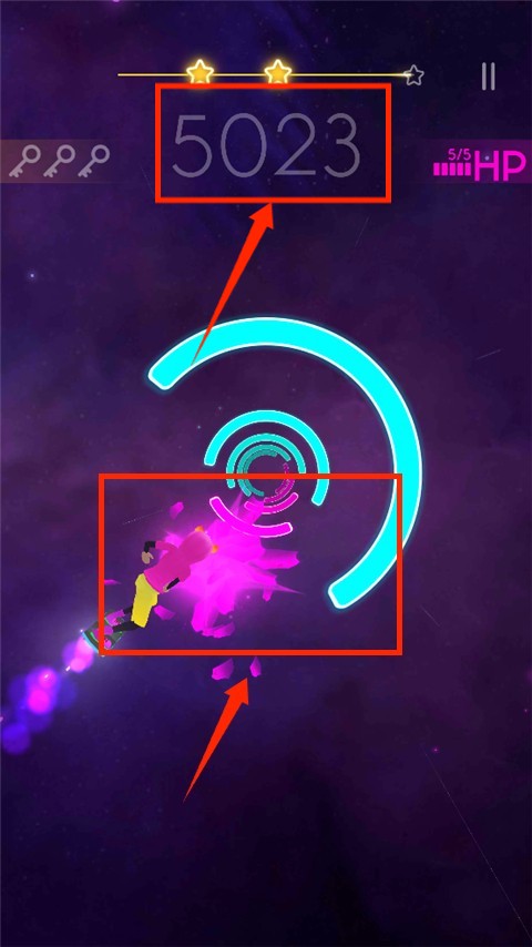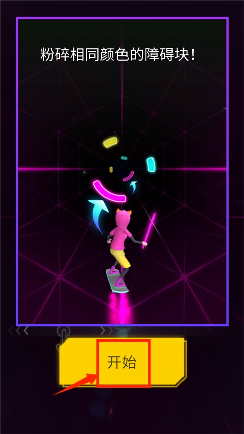 2、控制你的角色左右移动,精准粉碎与角色颜色匹配的障碍块。