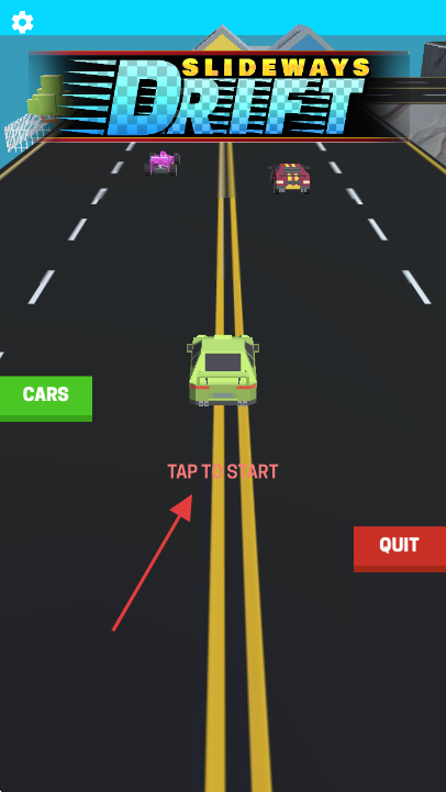 1、点击【TAP TO START】开始游戏,操控绿色汽车在赛道上行驶,准备超越前方车辆。