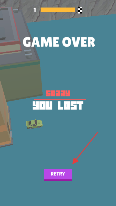3、若车辆掉落赛道,点击紫色【RETRY】按钮重新开始游戏,再次挑战。