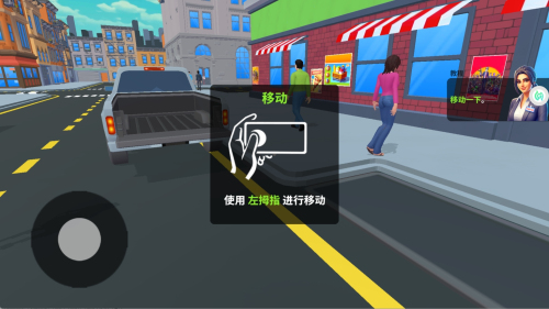 1、通过手机的虚拟握柄操控,左拇指进行移动可以控制人物的行为动作。