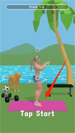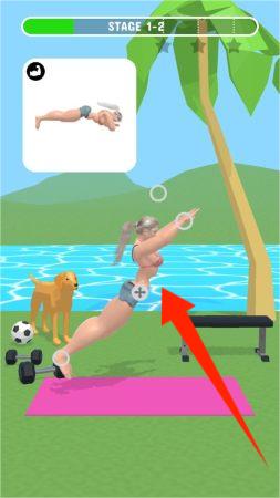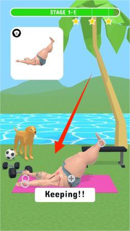 2、操控角色模仿示范动作,通过点击屏幕等操作,使角色做出相应健身动作,保持动作的准确性和连贯性。