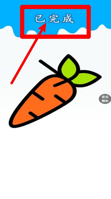 3.胡萝卜图案涂色完成后点击“已完成”提示,作品将保存并可分享到社交平台,展示你的创作成果。