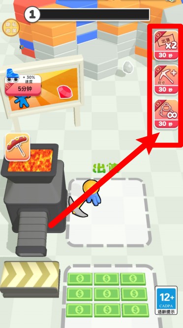 1.关注右侧菜单栏中的功能按钮,合理安排加成道具和时间,优化收益最大化,挑战更高排名。