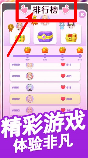 3.点击主界面“排行榜”按钮进入玩家排名列表,查看最新排名,快速了解当前进度和目标,向顶级排名进发。