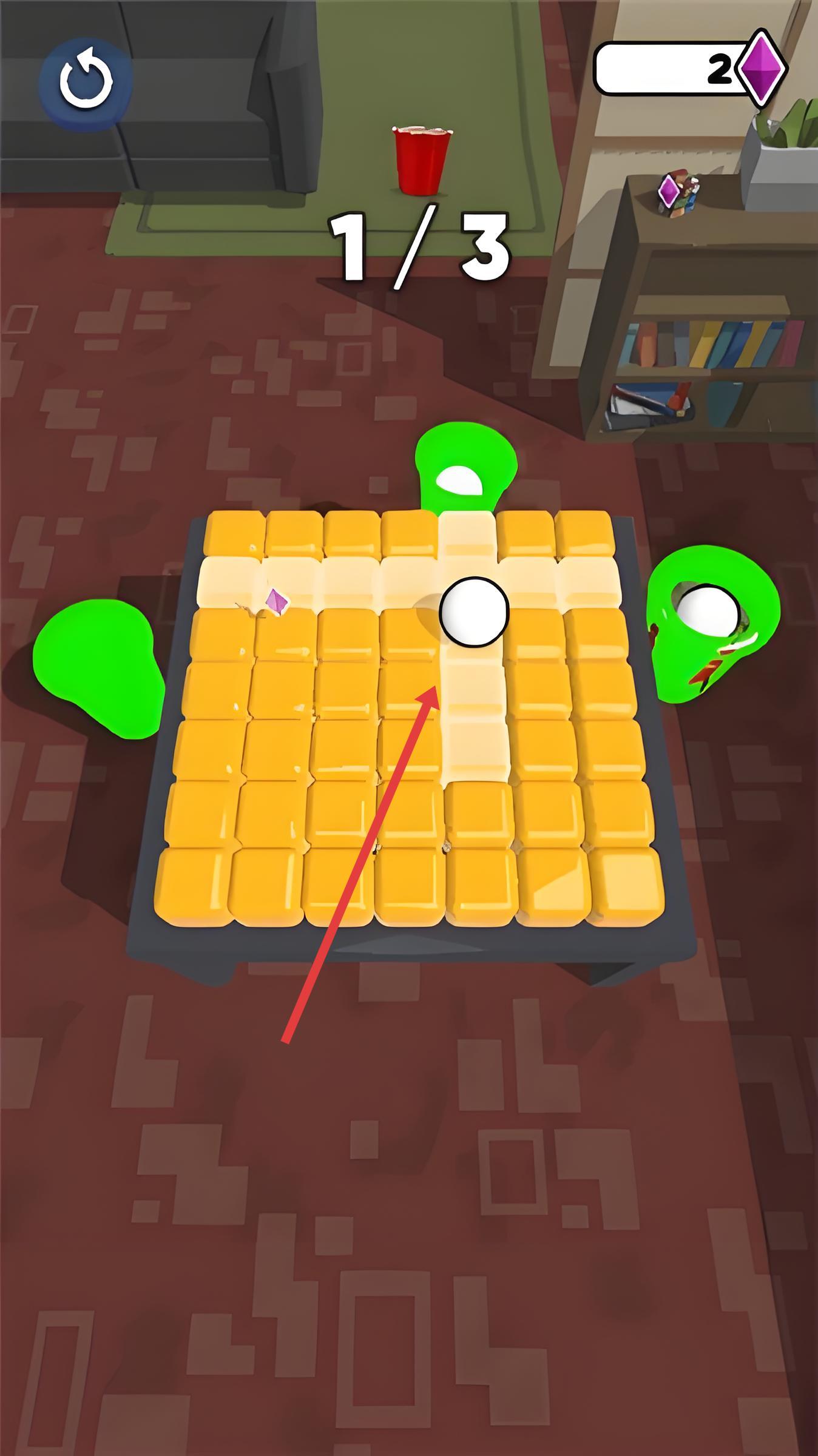 各杯有球是一款极具趣味性的3D休闲益智射击佳作,玩家将置身于充满生活气息的客厅茶几场景中,在7X7格的平台上迎接独特挑战,目标是通过精准调整发射角度,让小球在平台上滚动并利用物理撞击原理,使每个杯子恰好接住一个小球,且不能有任何遗漏,需要玩家巧妙计算球体的运动轨迹、碰撞角度与力度,每一次发射都需兼顾全局布局。