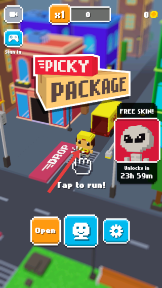 1、点击【Tap to run!】,操控角色开始配送,留意右侧【FREE SKIN!】解锁倒计时,完成配送。
