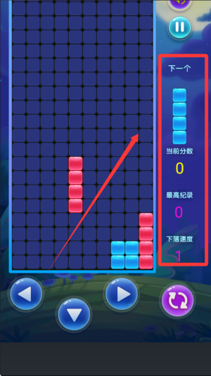 2、速度渐进挑战,游戏随着分数增加自动提升方块下落速度,考验玩家反应速度和操作精度,速度与技巧的完美结合带来持续挑战。