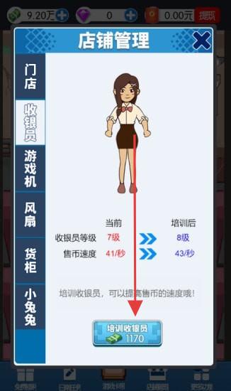 2、点击“店铺管理”,选择“游戏机”,消耗金币(如660)升级,加快客人耗币速度。