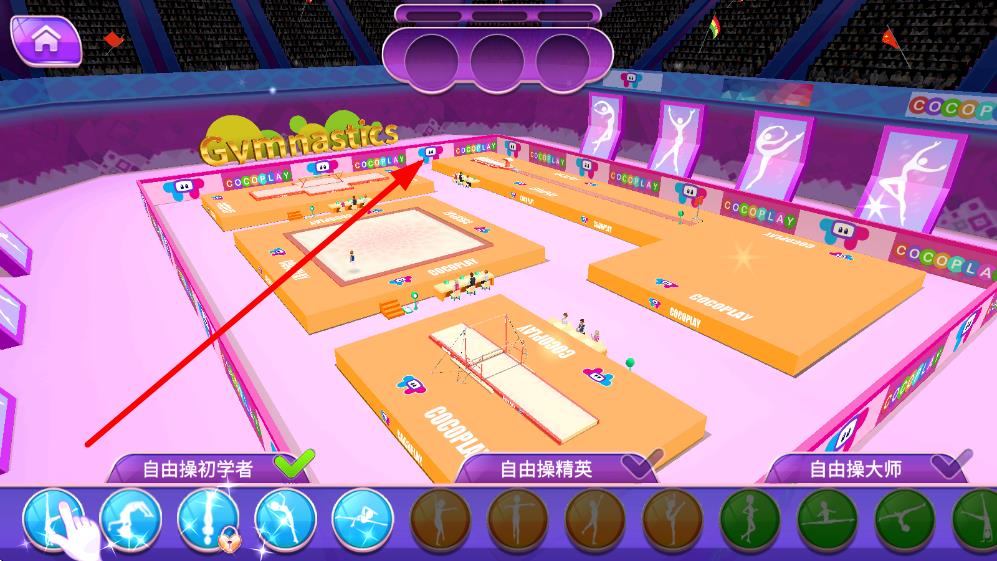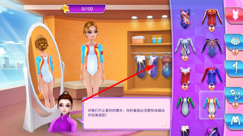 2、参加资格赛积累积分,用比赛奖金解锁“高低杠”“平衡木”等新项目,同时在更衣室搭配数百套服饰,提升角色魅力值与赛场表现。