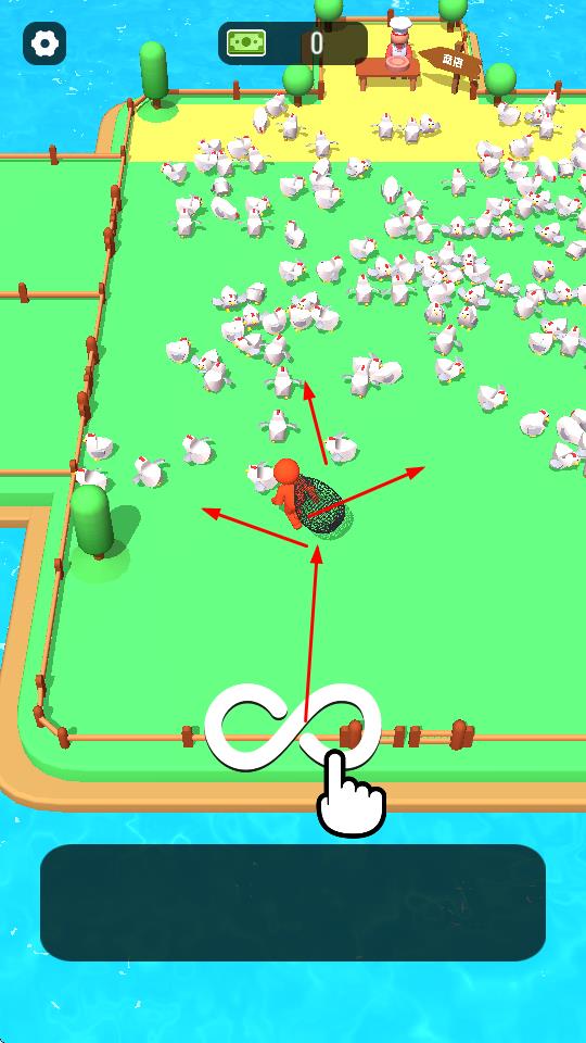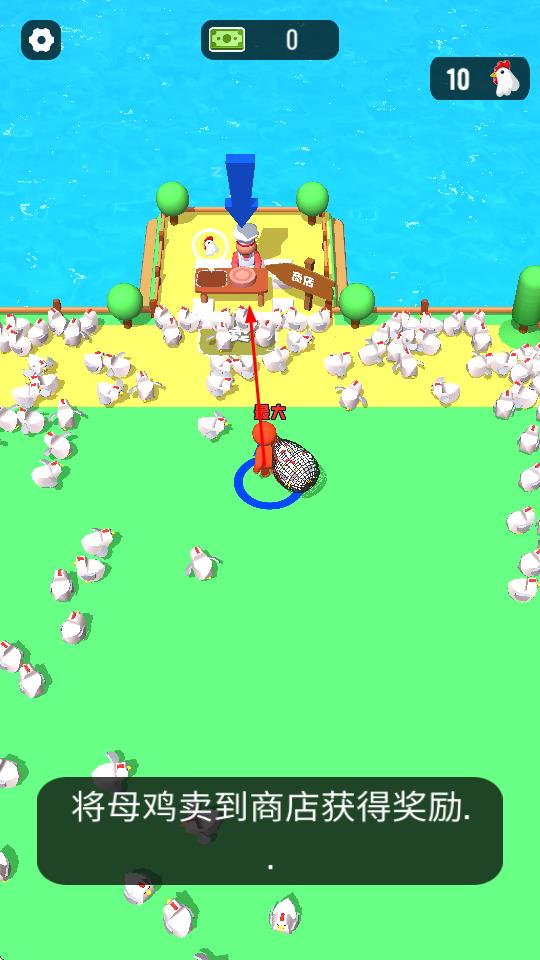 1、操控角色在鸡场跑动,用网兜圈住母鸡,规划移动路线,尽可能收集更多母鸡。