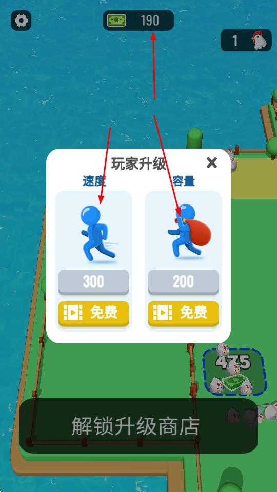2、将收集的母鸡送到“商店”区域,完成交易获得金币,积累财富用于后续发展。