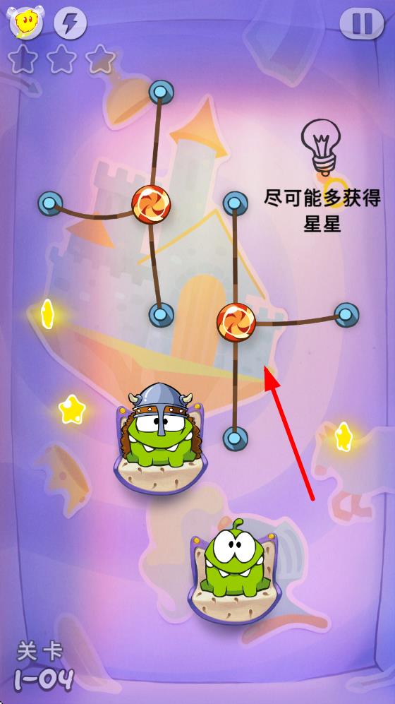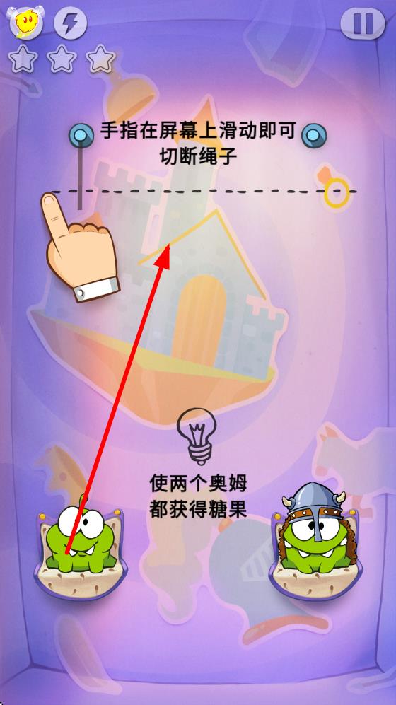 1、物理谜题破解:根据糖果重量与绳索受力角度,计算最佳切割顺序,利用惯性让糖果沿规划轨迹滚动并收集星星。