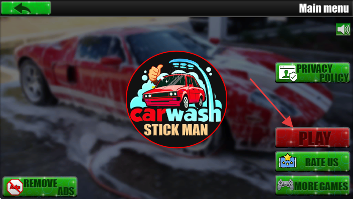 1、进入【car wash STICK MAN】游戏主界面,点击右侧红色【PLAY】按钮,开启洗车相关的驾驶玩法。
